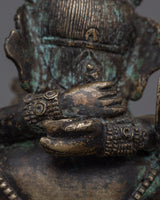 Chakrasamvara is a key character in Tibetan Buddhist Tantric traditions, frequently connected with overcoming ignorance and attaining enlightenment. The statue's numerous arms contain ceremonial artifacts representing different parts of Buddhist teachings and practices. The presence of his partner, Vajravarahi, emphasizes the tantric road to enlightenment and the unification of technique and insight. The statue, weighing 3.13 kg, is solid and well-balanced, making it ideal for exhibition in meditation rooms, personal altars, or Buddhist art collections. This handcrafted object is more than just a beautiful relic; it also has significant religious and cultural value, exhibiting Himalayan craftsmanship's artistic traditions.