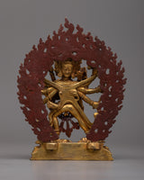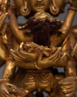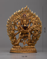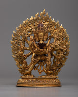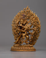 Every element of the statue, expertly sculpted by experienced artisans, depicts the spirit of the heavenly union, from the deities' calm looks to the complexities of their apparel. The statue's symbolism encourages believers to reflect on tantra's profound teachings and deepen their spiritual practices. Whether displayed in temples, meditation areas, or personal altars, the Chakrasamvara Consort Statue is a poignant reminder of the unbreakable tie between wisdom and compassion on the path to enlightenment.