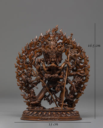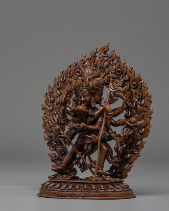 Discover the hand-crafted Tantric Deity Chakrasambhara statue, a powerful symbol of supreme wisdom and bliss. Measuring 16.5cm in height and 13cm in width, this finely detailed statue weighs 0.85kg and is crafted from oxidized copper, Perfect for meditation spaces or as a meaningful decorative piece, it inspires mindfulness and spiritual growth. Its intricate design reflects traditional artistry, making it both a spiritual treasure and an aesthetic statement in your home. Enhance your environment with this embodiment of enlightenment and tranquility.