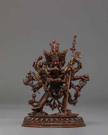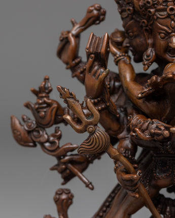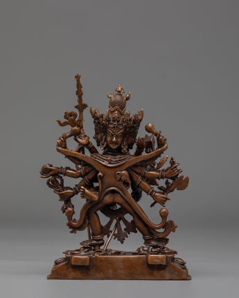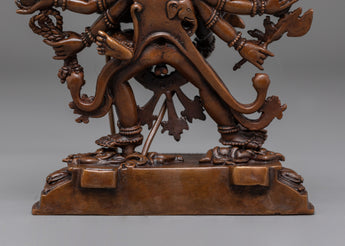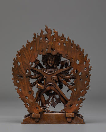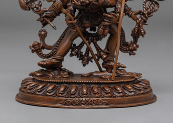 Embrace the profound spiritual power of the Tantric Deity Chakrasambhara statue, also known as Śrī Heruka. This revered figure in Tantric Buddhism embodies the perfect union of wisdom and compassion, guiding seekers towards ultimate enlightenment and supreme bliss. Often shown alongside his consort Vajravārāhī, Chakrasambhara symbolizes the transformation of negative emotions into enlightened energy. This statue not only enhances meditation by helping to focus the mind and remove inner obstacles but also acts as a potent symbol of protection, dispelling negative influences. Crafted with care, it brings both spiritual depth and aesthetic beauty to any space, making it an essential addition for those seeking mindfulness and inner harmony.