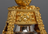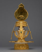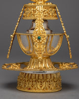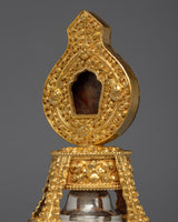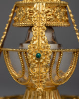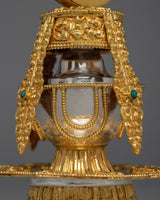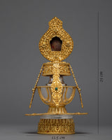 The Handcrafted Long Life Vase is a radiant embodiment of artistry and spiritual symbolism. Carefully crafted from copper and adorned with lustrous 24k gold plating, this vase exudes an air of elegance and reverence. Its intricate design and meticulous craftsmanship make it a potent symbol of longevity, prosperity, and spiritual abundance. With a height that grants it a commanding presence, this vase serves as a focal point for rituals, prayers, and offerings, inviting practitioners to connect with the divine and invoke blessings for a life of well-being and fulfillment. As a work of art and a spiritual tool, this Long Life Vase encapsulates the fusion of artistic excellence and profound spiritual significance, inviting a sense of grace and auspiciousness into sacred spaces.