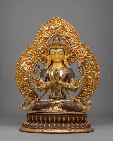 4-Armed Bodhisattva Chenrezig Statue | Gold Gilded Copper Art from Nepal$500.00$375.00 /Save 40%