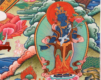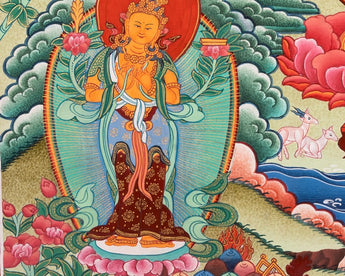 It goes without saying that every detail of a painting has a symbolic meaning. Regardless of your religious affiliation, a thangka can help you on your path to enlightenment, whether you practice Buddhism or have other religious convictions. Thangkas are paintings that depict deities with various iconographic elements and symbolism that encourage meditation on the teachings of the god they depict. Any thangka is intended to aid in the removal of the film of ignorance, which is a significant barrier to the road to enlightenment. The Thangka is revered as a holy item. They promote positivity, spread Buddhism's teachings, bring about peace, harmony, and oneness, and dispel any negative energy that may be there.