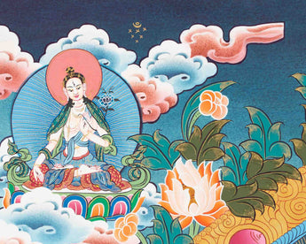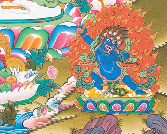 This thangka is both a sacred object for meditation and a stunning work of art, offering blessings of compassion, protection, wisdom, healing, and spiritual power and enhancing any space with its spiritual richness and beauty.