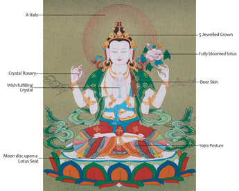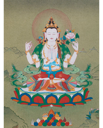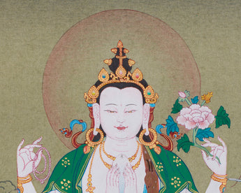12 Inch Chenrezig Buddha Thangka | Embodiment of Infinite Compassion