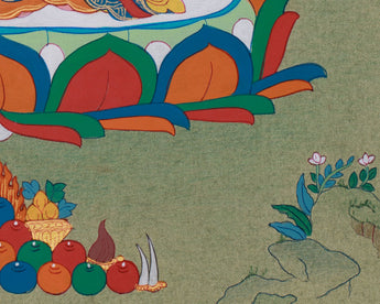 As you requested consecrations/blessings, we can take the thangka to nearby monasteries/Rinpoches from the Boudha Stupa. We kindly ask that you contribute $50 to the monasteries for these blessing/consecration services.