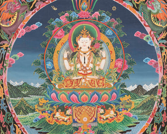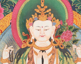 4 Armed Chengrezig Thangka | Buddhist Newari Art Style from Kathmandu Nepal