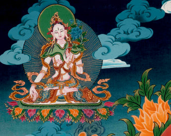 It goes without saying that every detail of a painting has a symbolic meaning. Regardless of your religious affiliation, a thangka can help you on your path to enlightenment, whether you practice Buddhism or have other religious convictions. Thangkas are paintings that depict deities with various iconographic elements and symbolism that encourage meditation on the teachings of the god they depict. Any thangka is intended to aid in the removal of the film of ignorance, which is a significant barrier to the road to enlightenment. The Thangka is revered as a holy item. They promote positivity, spread Buddhism's teachings, bring about peace, harmony, and oneness, and dispel any negative energy that may be there.
