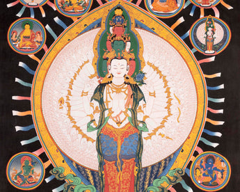 It goes without saying that every detail of a painting has a symbolic meaning. Regardless of your religious affiliation, a thangka can help you on your path to enlightenment, whether you practice Buddhism or have other religious convictions. Thangkas are paintings that depict deities with various iconographic elements and symbolism that encourage meditation on the teachings of the god they depict. Any thangka is intended to aid in the removal of the film of ignorance, which is a significant barrier to the road to enlightenment. The Thangka is revered as a holy item. They promote positivity, spread Buddhism's teachings, bring about peace, harmony, and oneness, and dispel any negative energy that may be there.
