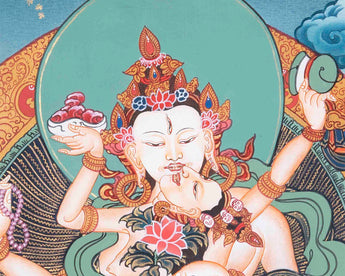 It goes without saying that every detail of a painting has a symbolic meaning. Regardless of your religious affiliation, a thangka can help you on your path to enlightenment, whether you practice Buddhism or have other religious convictions. Thangkas are paintings that depict deities with various iconographic elements and symbolism that encourage meditation on the teachings of the god they depict. Any thangka is intended to aid in the removal of the film of ignorance, which is a significant barrier to the road to enlightenment. The Thangka is revered as a holy item. They promote positivity, spread Buddhism's teachings, bring about peace, harmony, and oneness, and dispel any negative energy that may be there.