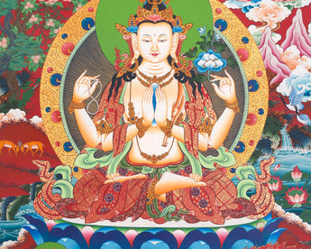 Avalokitesvara Chengrezig Thangka | Flanked by Boddhisattvas Vajrapani and Manjushree | Wall Decors