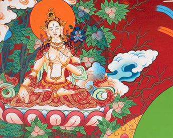 It goes without saying that every detail of a painting has a symbolic meaning. Regardless of your religious affiliation, a thangka can help you on your path to enlightenment, whether you practice Buddhism or have other religious convictions. Thangkas are paintings that depict deities with various iconographic elements and symbolism that encourage meditation on the teachings of the god they depict. Any thangka is intended to aid in the removal of the film of ignorance, which is a significant barrier to the road to enlightenment. The Thangka is revered as a holy item. They promote positivity, spread Buddhism's teachings, bring about peace, harmony, and oneness, and dispel any negative energy that may be there.