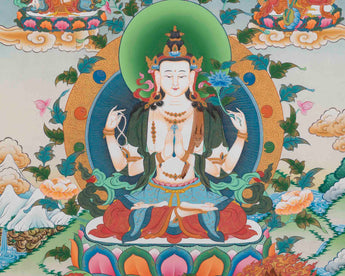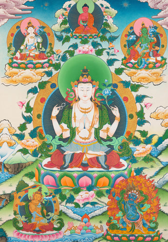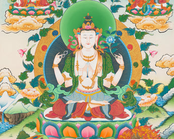 Avalokitesvara Chengrezig Thangka | Traditional Buddhist Paint | Wall Decors