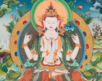 Avalokitesvara Chengrezig Thangka | Mindfulness Meditation Painting