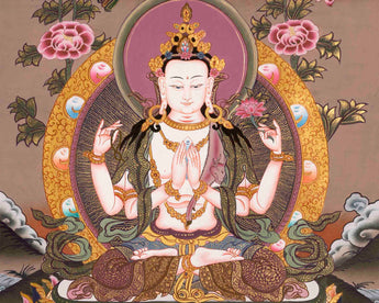 Avalokitesvara Chenrrsig Thangka | Bodhisattva Of Compassion | Wall Decors