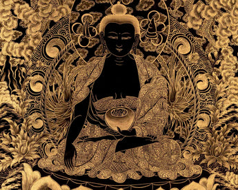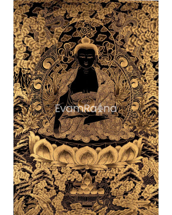 Black and Gold Shakyamuni Buddha & Bodhisattvas Thangka | Wall Decor Gifts