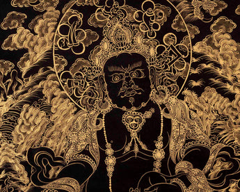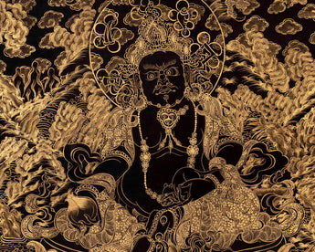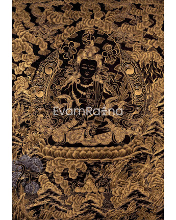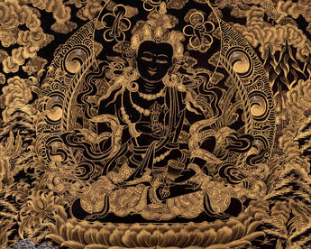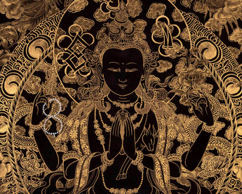 Black and Gold Original Hand-Painted Chenrezig Thangka: