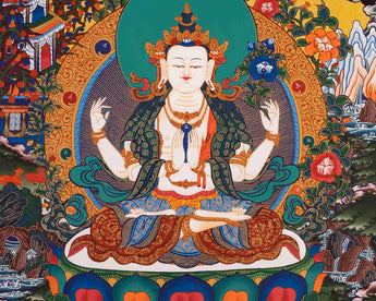 Bodhisattva Avalokiteshvara Chenresig | Tibetan Thangka | Wall Decors