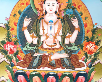 Bodhisattva Avalokiteshvara Thangka | 4 Armed Chengrezig | Tibetan Buddhist Painting