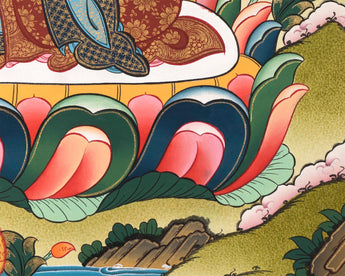 This is the hand-painted fine quality Bodhisattva Avalokiteshvara Thangka painting with a Acrylic colors. The Lokeshwor means the Lord who looks down towards the entire realm. Lokeshwor Bodhisattva is the one worshiped first in the Buddhist tradition.