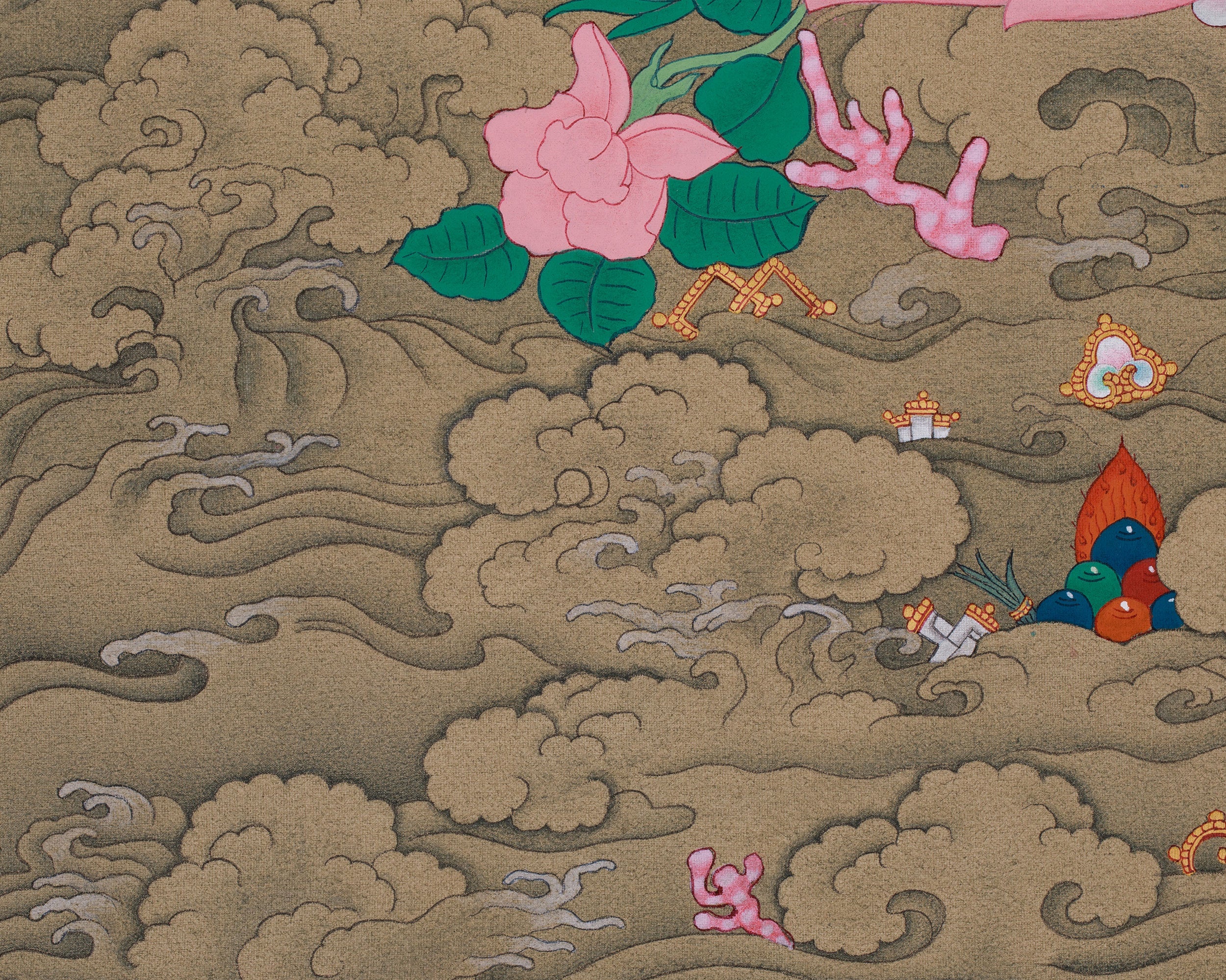 - Regularly inspect your thangka; examine the borders and all attachments.