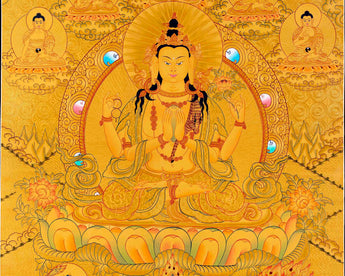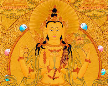 Chengrezig Avalokitesvara Hand-painted 24k Gold Style Thangka
