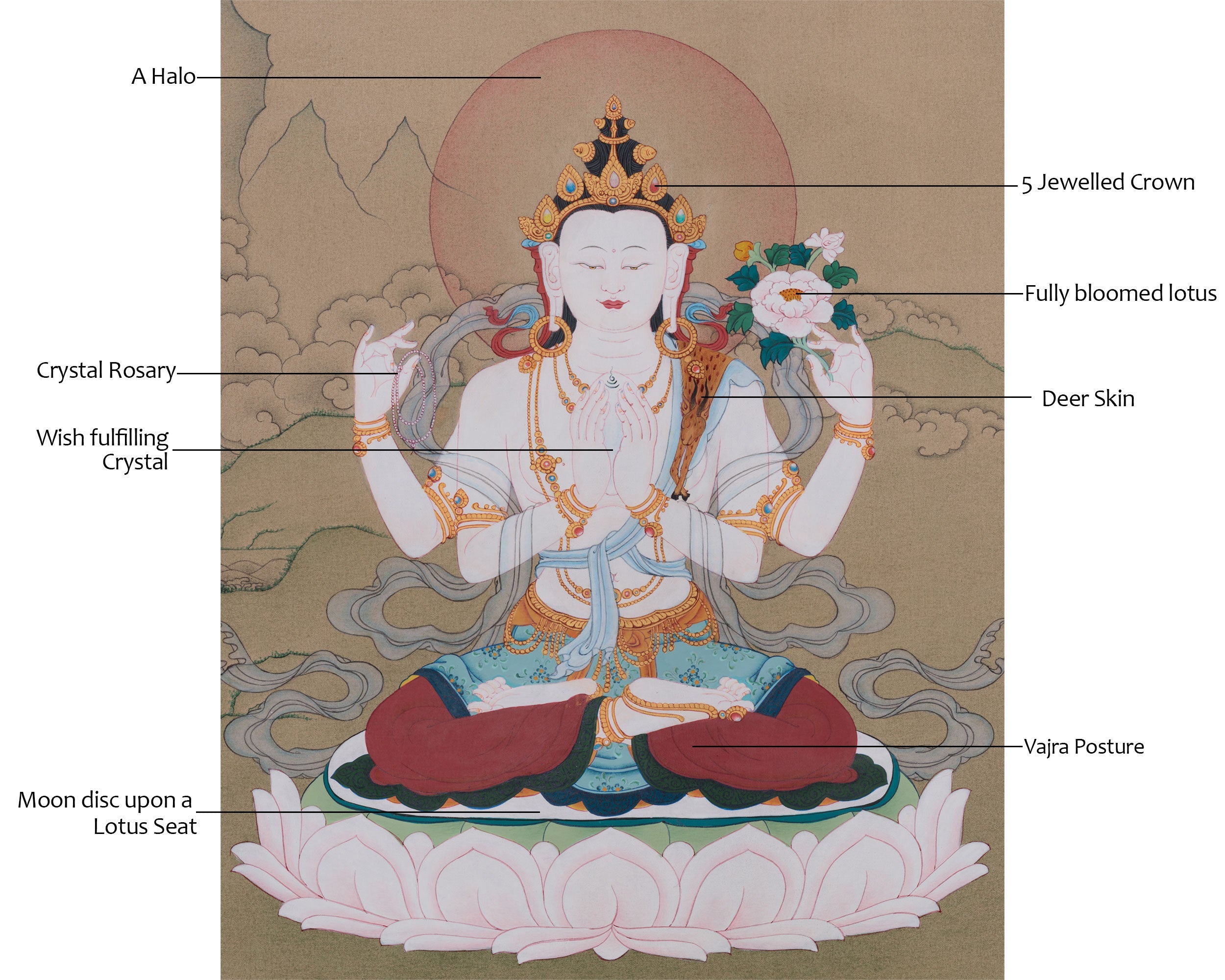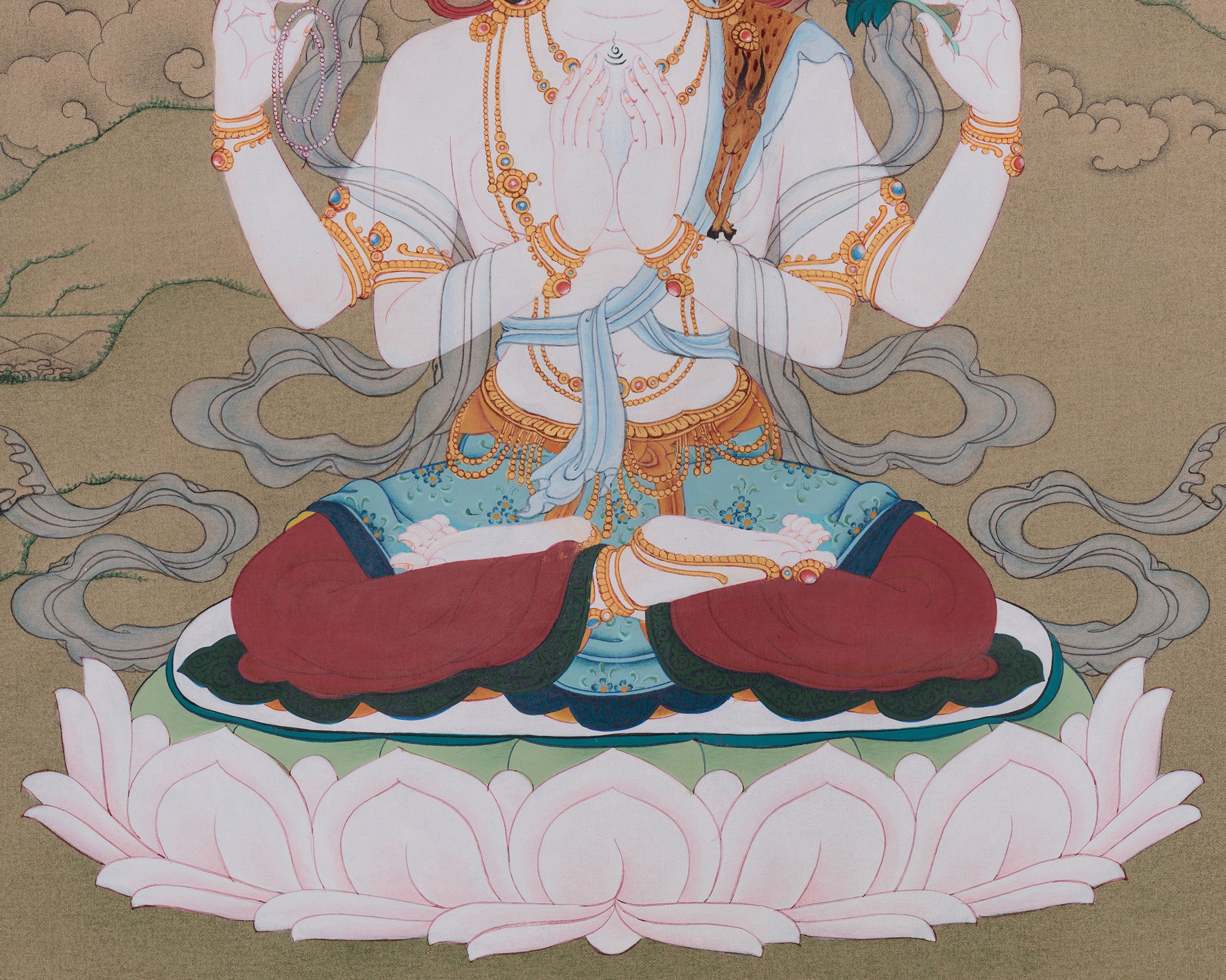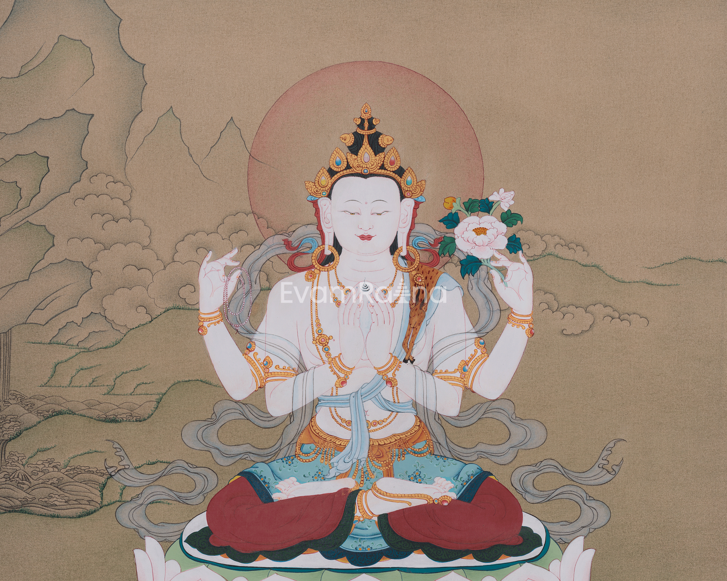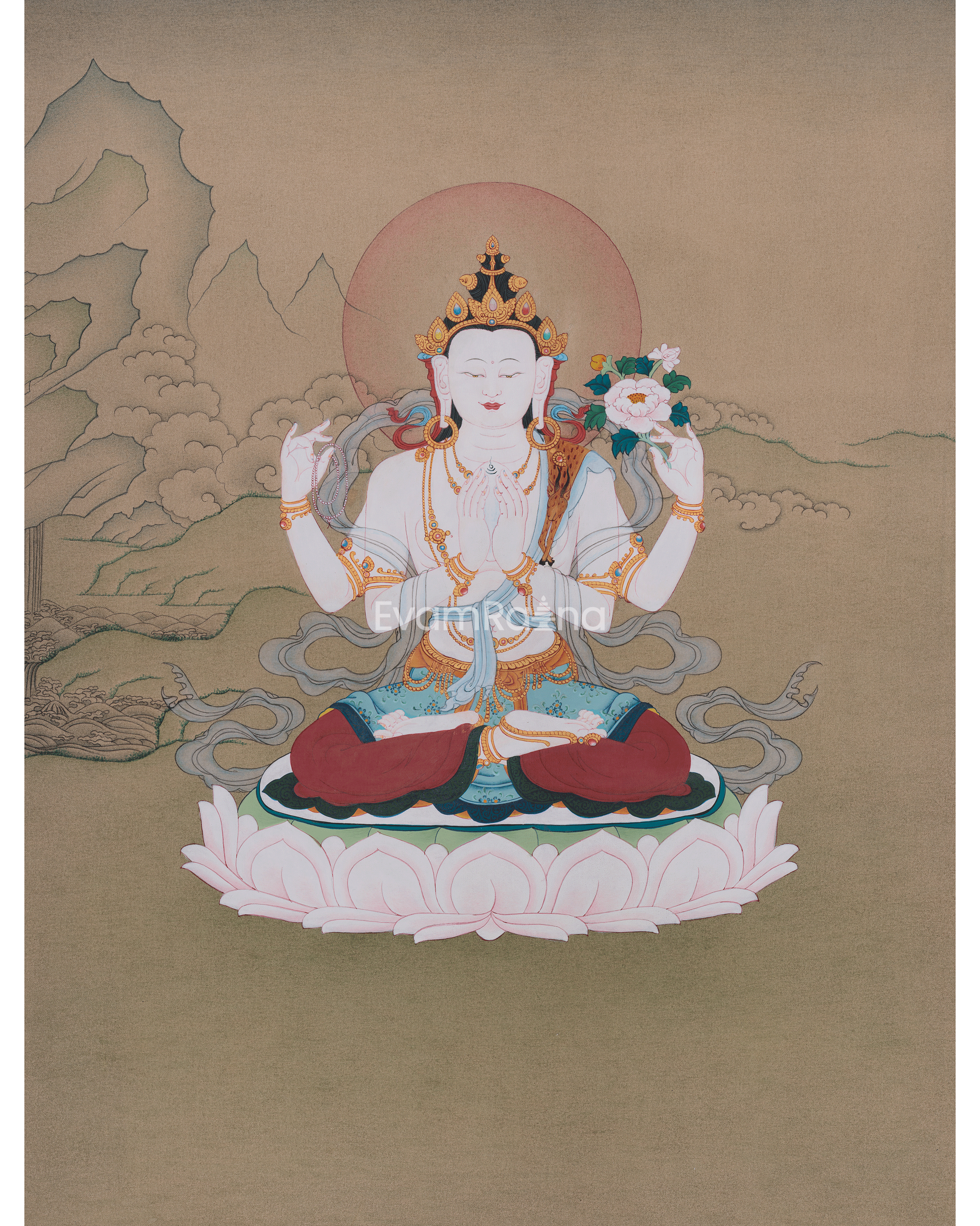 Tibetan Chenrezig Bodhisattva of Compassion Painting | Symbol of Loving-Kindness and Enlightenment