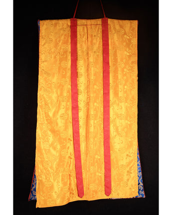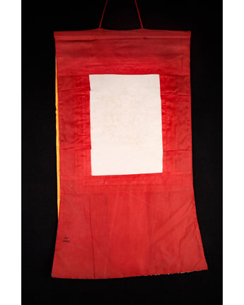 Chenrezig, the Bodhisattva of Great Compassion, is one of Tibetan Buddhism's most renowned deities, representing boundless mercy and compassion for all sentient beings. Symbolizing unconditional affection and the desire to alleviate suffering, Chenrezig encourages practitioners to develop mindfulness and kindness. This thangka's artistic and spiritual importance is further enhanced by its blue and red silk brocade framing and hand-painted on cotton canvas.