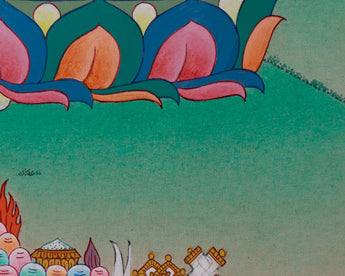 As you requested for consecrations/blessings, we can take the thangka to nearby monasteries/Rinpoches from the Boudha Stupa. We kindly ask that you contribute $50 to the monasteries for these blessing/consecration services.
