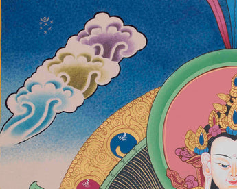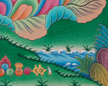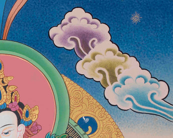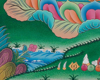 The vibrant colors and intricate details of the thangka reflect the artistic and spiritual traditions of Tibetan Buddhism, making it not only a sacred object for meditation and prayer but also a stunning piece of art that can bring a sense of peace and inspiration to any space.