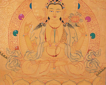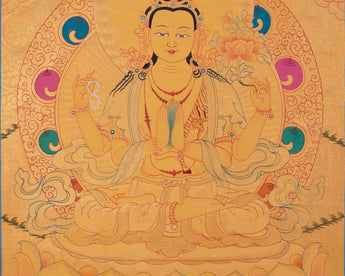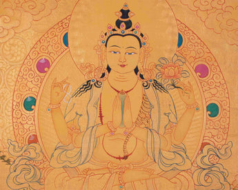 Four Armed Chengrezig Thangka Painting | Avalokiteshvara Arts | Bodhisattva Thangka |