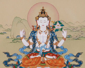 The Four-Armed Chenrezig Buddha Thangka | Tibetan Bodhisattva Painting