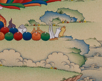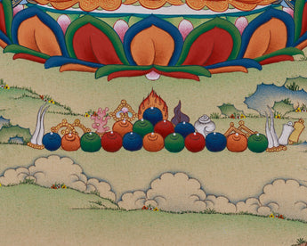 As you requested for consecrations/blessings, we can take the thangka to nearby monasteries/Rinpoches from the Boudha Stupa. We kindly ask that you contribute $50 to the monasteries for these blessing/consecration services.