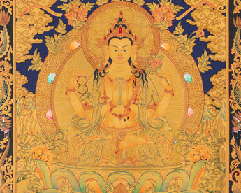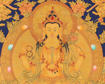 Gold Style Avalokitesvara Chengrezig | Bodhisattva Thangka | Wall Decors