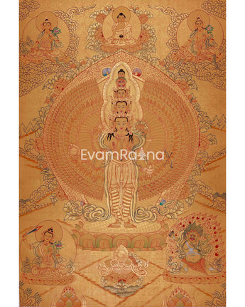 Gold Style Lokeshvara Thangka | 1000 Armed Chenresig Avalokiteshvara Painting