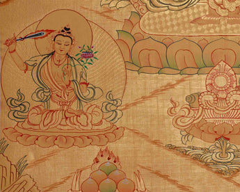 This thangka serves as a piece of religious art and a meditative aid, helping practitioners visualize and connect with these enlightened beings. The Gold Style Lokeshvara thangka, with rich symbolism and exquisite artistry, is a treasured object of devotion and a stunning example of Tibetan Buddhism.