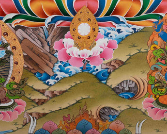 THIS THANGKA IS HAND-PAINTED IN THE TRADITIONAL STYLE BY A NEPALI ARTIST AND THE QUALITY IS HIGH