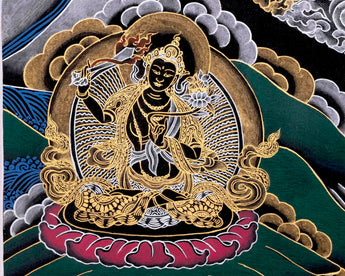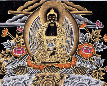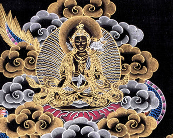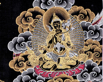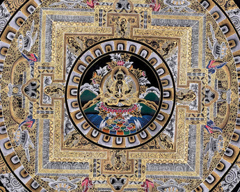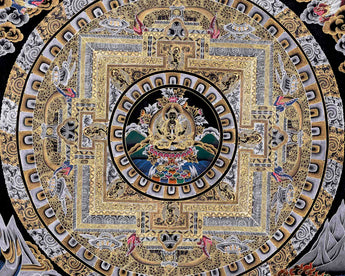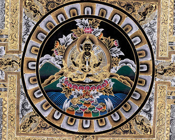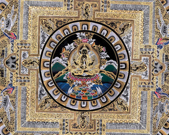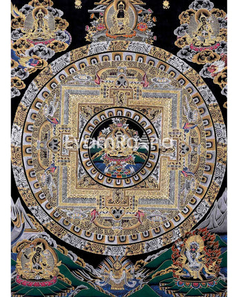 Original Hand Painted Black And Gold Style Chengrezig Mandala Thangka | Tibetan Buddhist Meditation And Yoga Art |