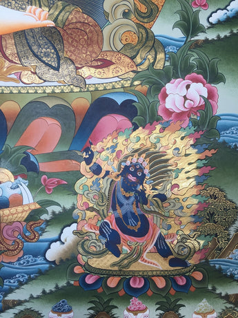 THIS THANGKA IS HAND-PAINTED IN THE TRADITIONAL STYLE BY A NEPALI ARTIST AND THE QUALITY IS HIGH