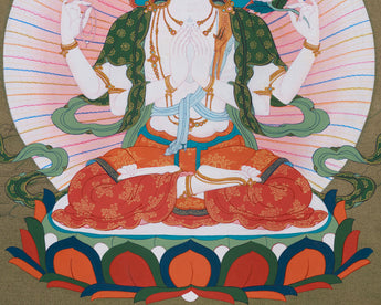 Tibetan Bodhisattva Four Armed Chenrezig Thangka | Buddha of Compassion