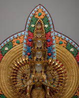 1000 Armed Crystal Avalokitesvara Statue | Magnificent Representation in Copper, Enhanced with 24K Gold Plating