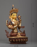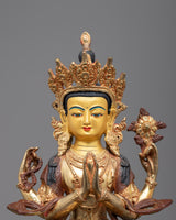 4 armed Chenrezig Statue | Elevate Your Shrine with our Gold Gilded Statue