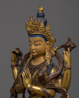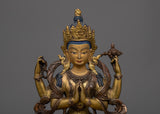 This piece's craftsmanship, as evidenced by its detailed features and elegant gold plating, speaks to the skill and dedication of its creators. The gold gilding, which has now matured with time, highlights the intricate design and gives Chenresig's compassionate demeanor a serene, reflective quality.