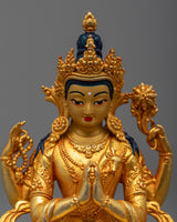 This Avalokiteshvara statue's experienced artisans have poured their talents into every detail, infusing it with complex carvings, bright hues, and a sense of divine energy. The statue's beauty and spiritual importance are enhanced by the mix of 24k gold gilding, 24k gold and acrylic paintwork, and the copper body. Every part of the statue, from the calm countenance to the soft posture, depicts Avalokiteshvara's loving energy and the transformational power of kindness.