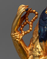 The Bodhisattva Four-Armed Chenrezig Statue is a majestic expression of compassion and enlightenment, precisely made from copper and embellished with sumptuous 24k gold plating. Standing at 10cm tall, this magnificent statue exudes the holy presence of Chenrezig, also known as Avalokiteshvara, the Bodhisattva of Compassion.