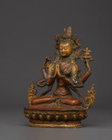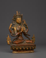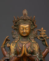 Chenrezig Handmade Statue | Brass & Oxidized Copper