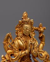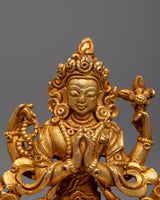 Enhance your spiritual practice with the Chenrezig Prayer Statue, which is a celestial representation of compassion and enlightenment. This sacred figure, precisely created by machine on a copper body and embellished with magnificent 24k gold plating, stands 6cm tall and radiates grace and serenity.
