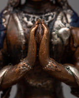 At 7cm tall, the Chenrezig Statue is finely machined and embellished with silver plating, serving as a beacon of kindness. Its exquisite design encapsulates the essence of Chenrezig, the Bodhisattva of Compassion, who represents boundless generosity and empathy. The silver plating adds to its tranquil appeal, making it a valuable addition to any meditation area or house.