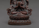The Compassionate Buddha Chenrezig Statue is a spiritual icon sculpted from oxidized copper to embody the teachings of compassion and mercy. Standing 5.5 cm tall and 4.5 cm wide, this compact yet striking piece perfectly captures the essence of Chenrezig, the Bodhisattva of Compassion, who is revered in Tibetan Buddhism for his boundless love and desire to alleviate suffering. Whether put on a home altar, meditation room, or spiritual shrine, this Chenrezig Buddha delivers tranquility, balance, and emotional healing to any setting.