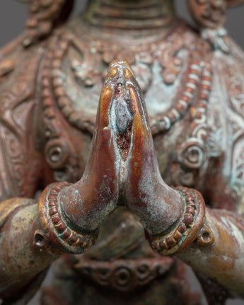 Copper Statue of Bodhisattva Chenrezig | Buddhist Altar Decor